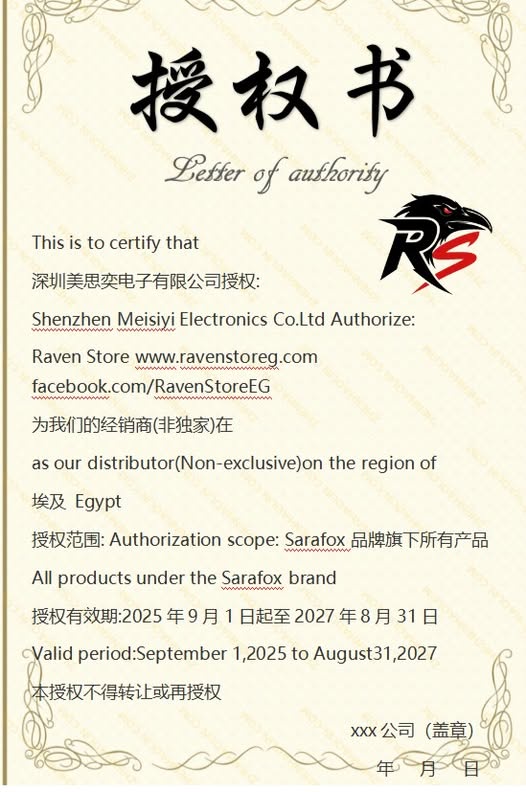 تم اعتماد Raven Store كـ وكيل رسمي لشركة Sarafox في السوق المصرية ![]()