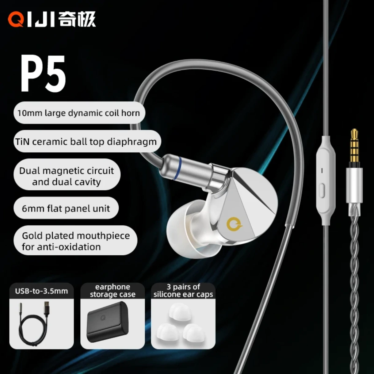 سماعات QIJI P5 للألعاب والموسيقى بمنفذ 3.5mm، مزودة بوحدات Dual Unit وتقنية HiFi وصوت 3D Bass لتجربة ألعاب احترافية وصوت نقي 2026
