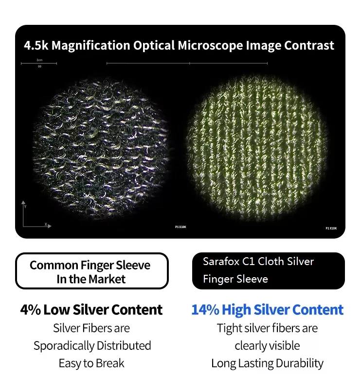 جانب الزر: 100% الياف الفضة C2 70% من مساحة الاصبع