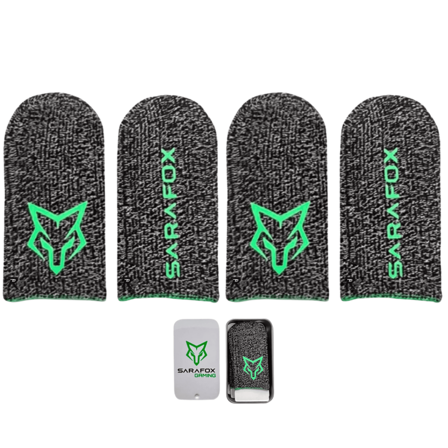 أداء متوازن! أصابع Sarafox V9 بمزيج 35% ألياف فضة لحساسية دقيقة، وnaيلون وسباندكس لراحة ومرونة فائقة. تتضمن العبوة 4 أصابع مع حافظة معدنية للحماية
