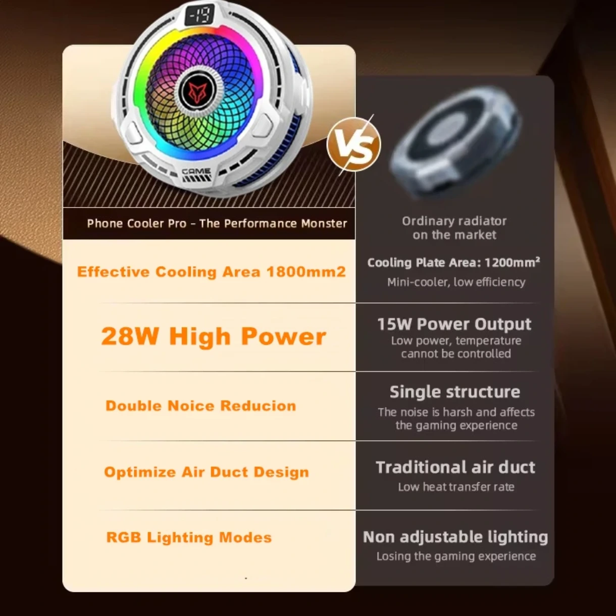 ✅ شاشة LED ذكية: تعرض درجة الحرارة الفعلية للمبرد لحظة بلحظة لمتابعة كفاءة الأداء أثناء اللعب.
