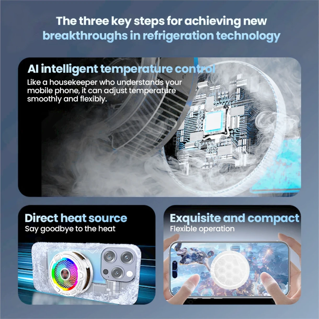 ✅ تقنية الذكاء الاصطناعي (AI): نظام ذكي يقوم بتعديل قوة التبريد تلقائياً حسب حرارة الجهاز لمنع تكثف المياه وحماية البطارية.