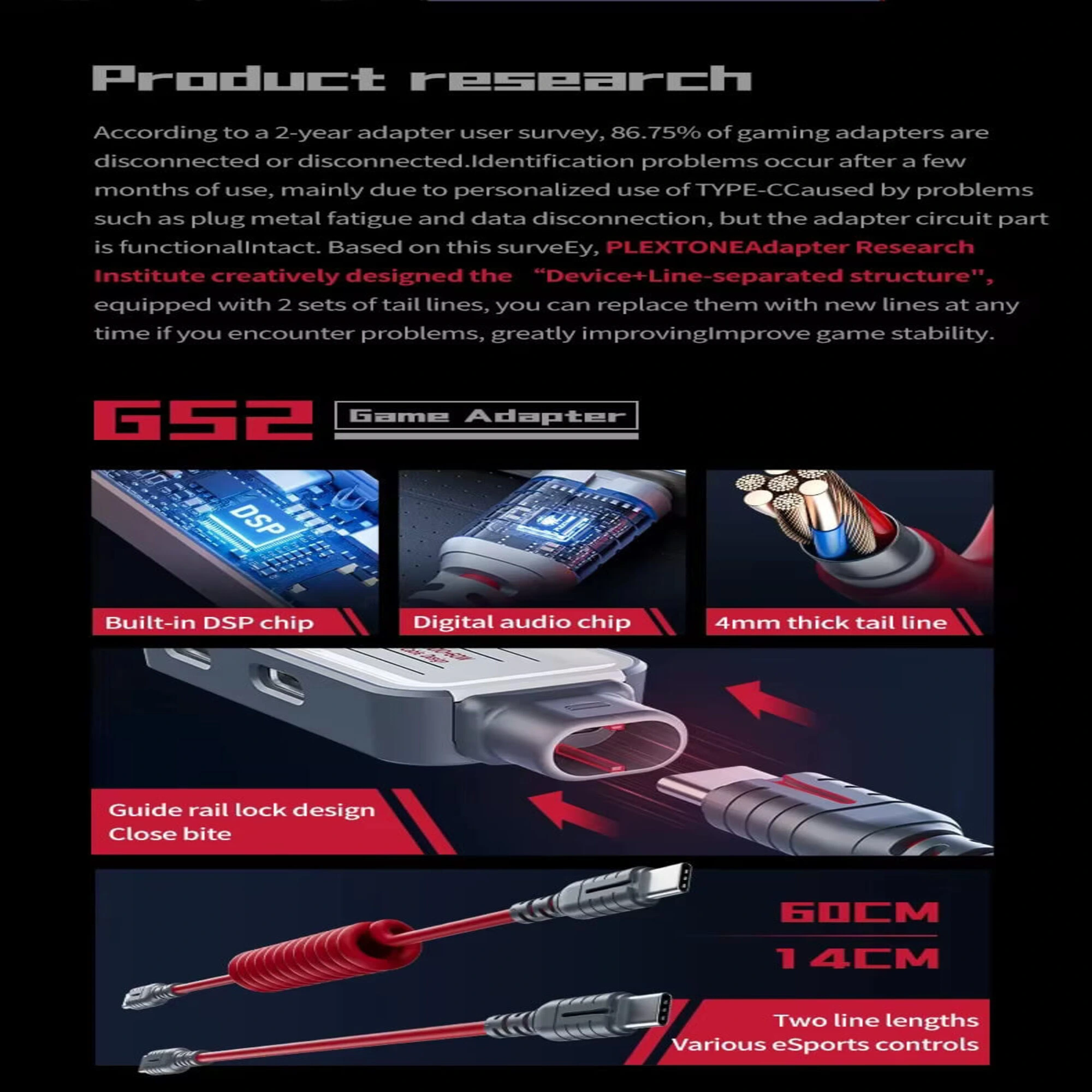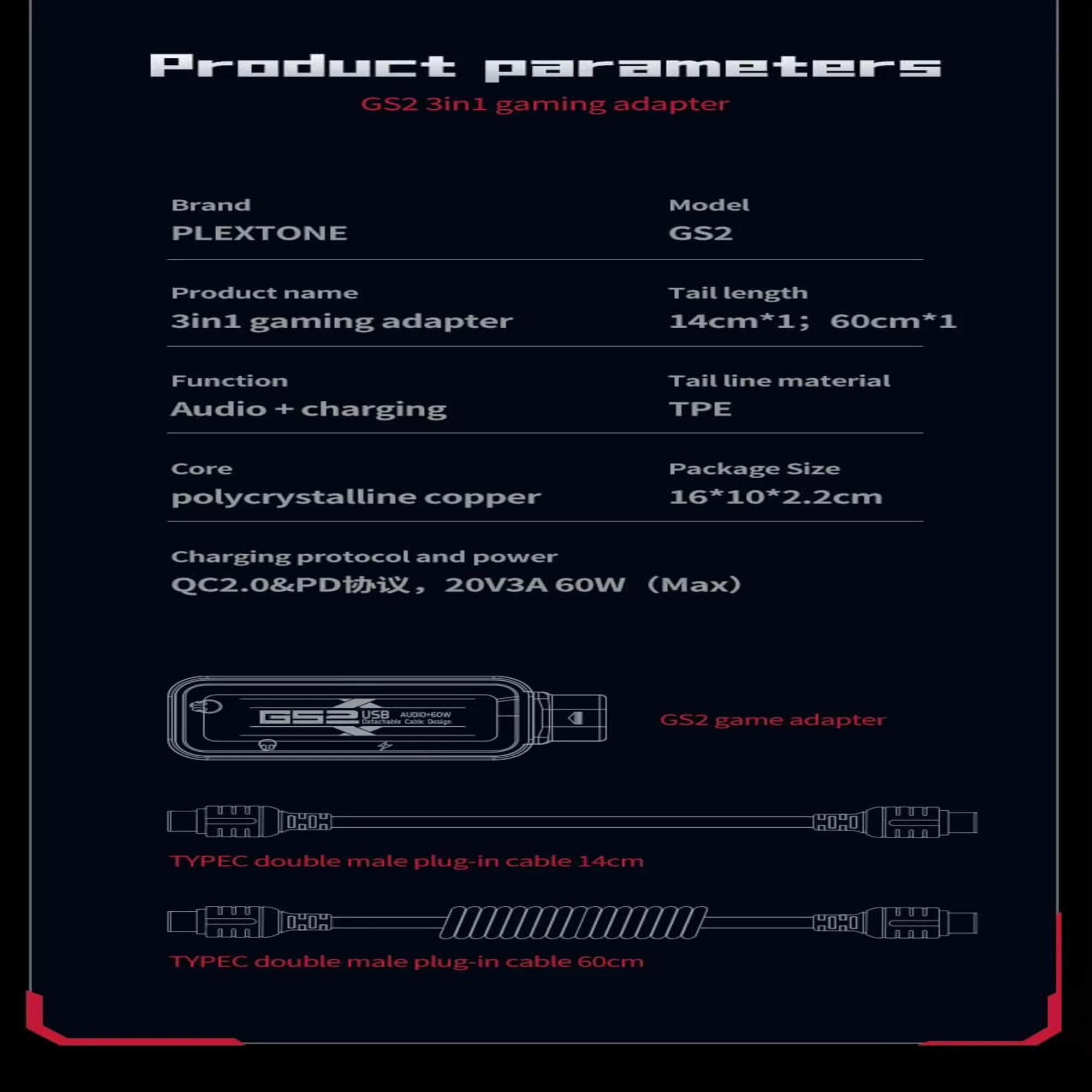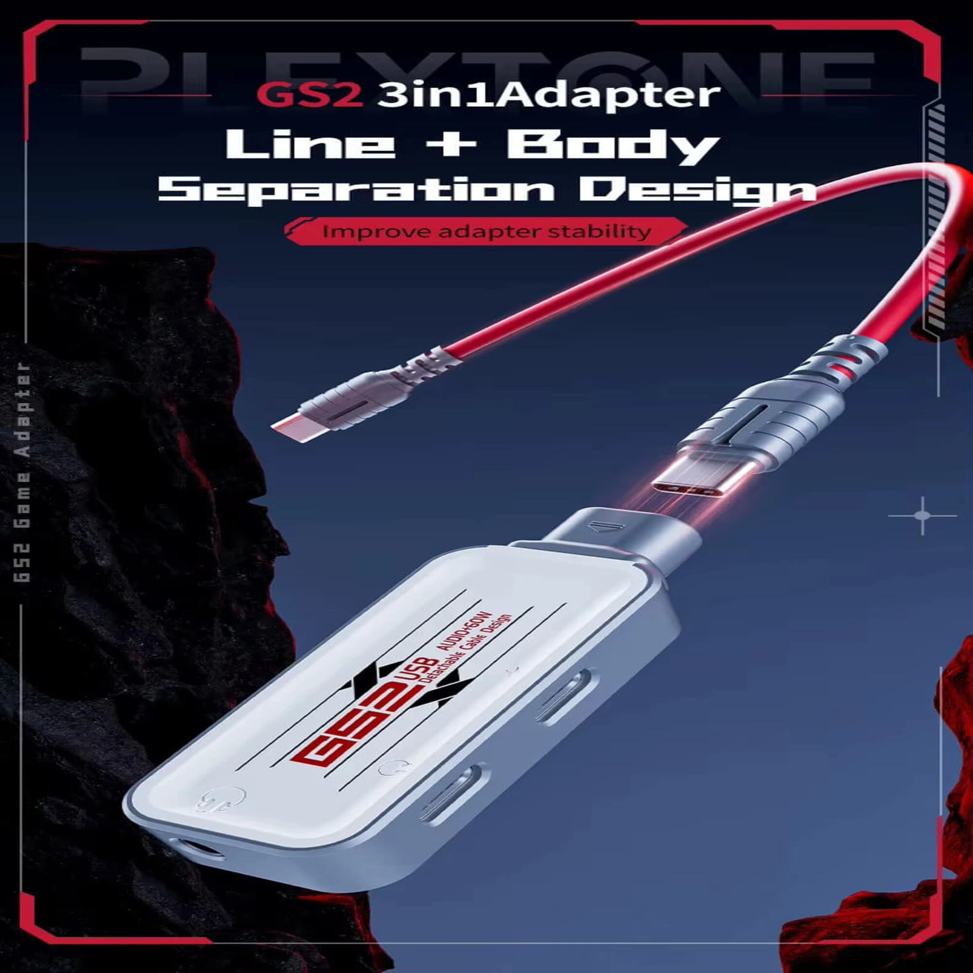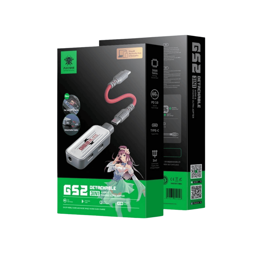 الحل الشامل! وصلة PLEXTONE GS2 بمدخلين Type-C ومنفذ AUX 3.5mm. صوت عالي الدقة وكابلات قابلة للتغيير. تأتي مع كابلين ومحول USB-A