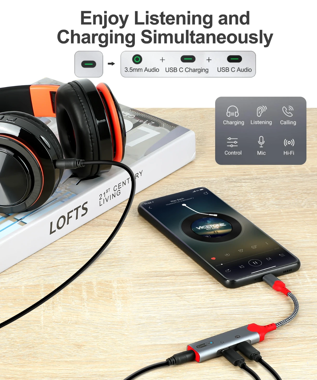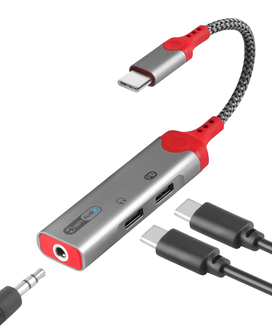 🎮 نوع المنتج: محول صوت وشحن احترافي (Type-C Audio Hub)
