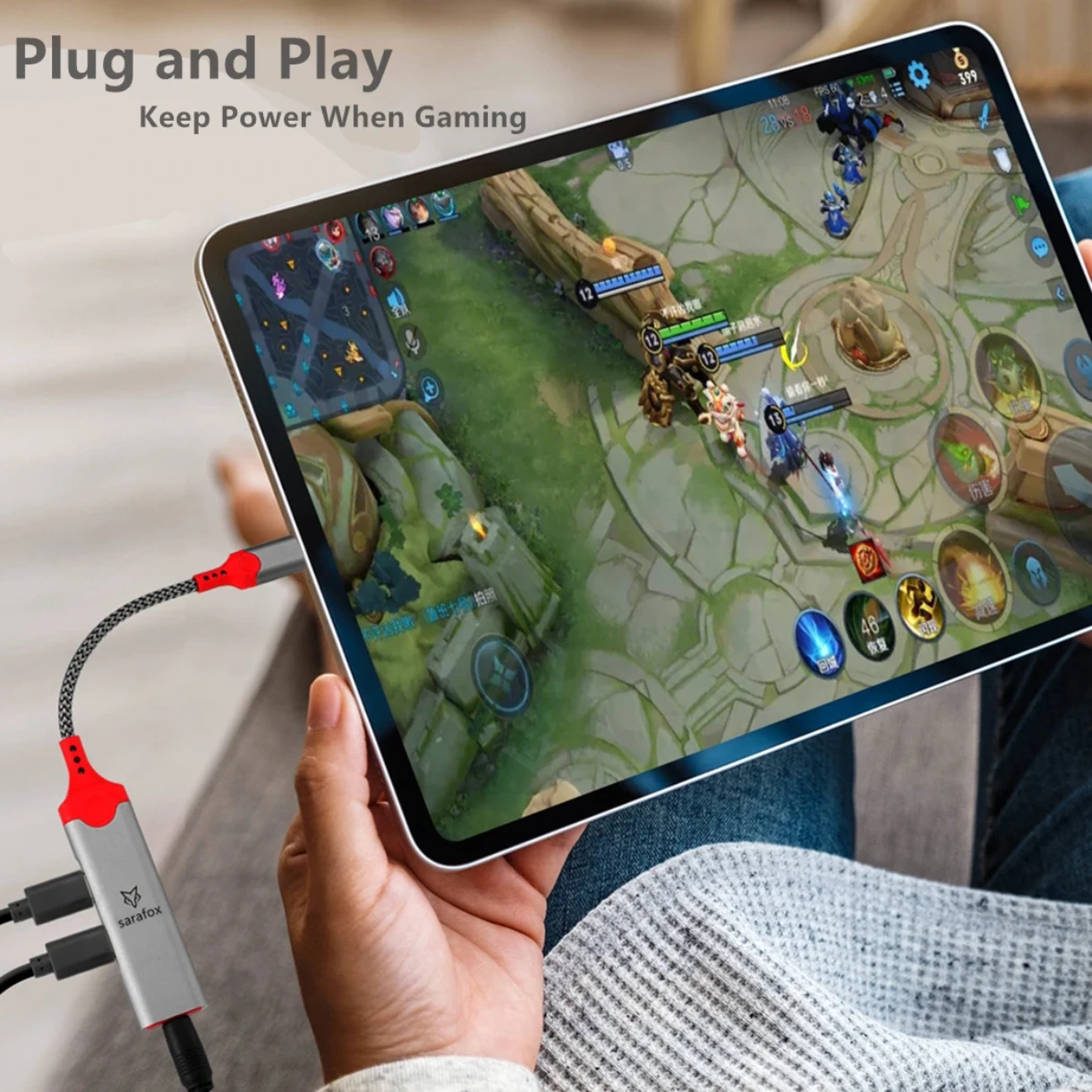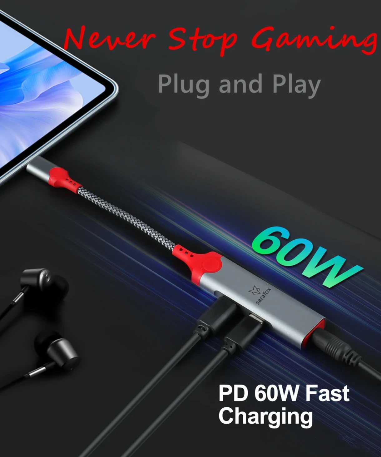3️⃣ منفذ Type-C PD: يدعم الشحن السريع بقدرة تصل إلى 60W لضمان استمرار اللعب دون نفاذ البطارية.